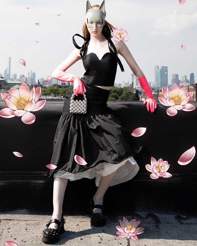 Spotted Sam Son Li wearing a knot tank top from Leisure Projects in Schon magazine.